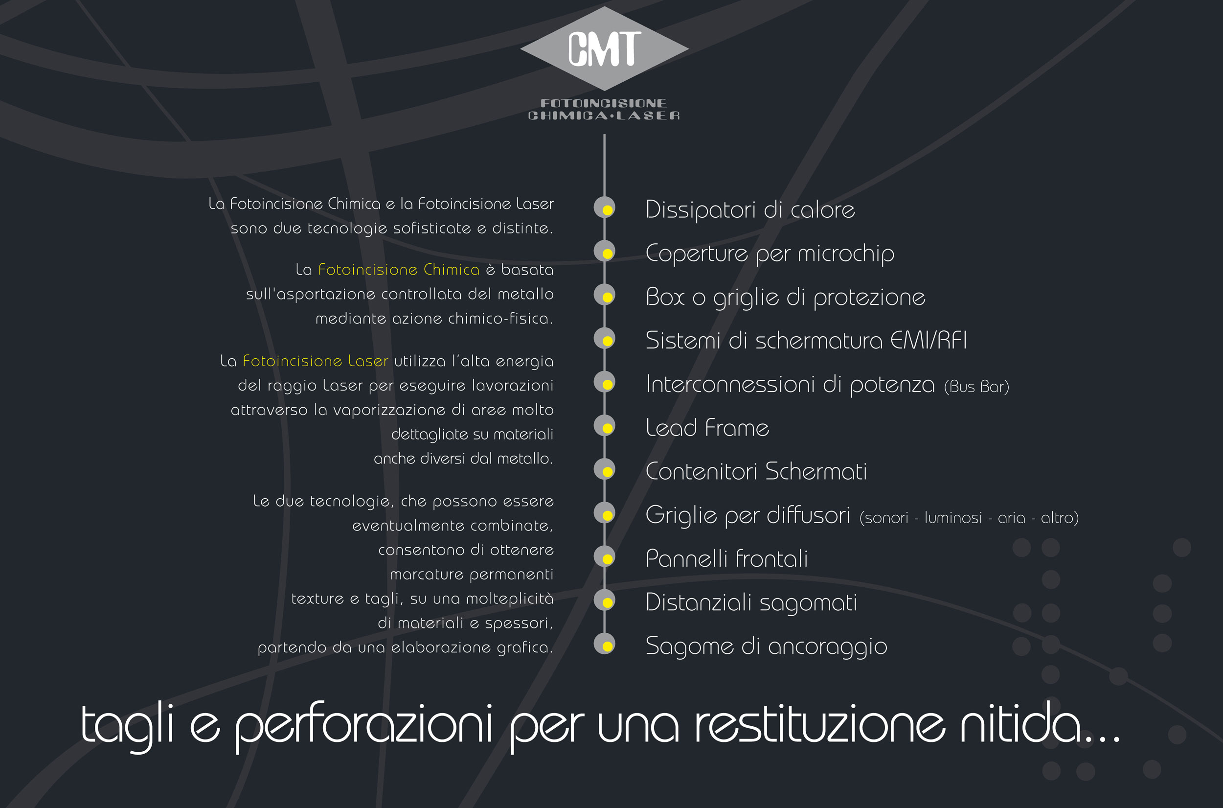 CMT Fotoincisione Chimica e Laser è una linea di produzione dedicata alla realizzazione di particolari metallici complessi.